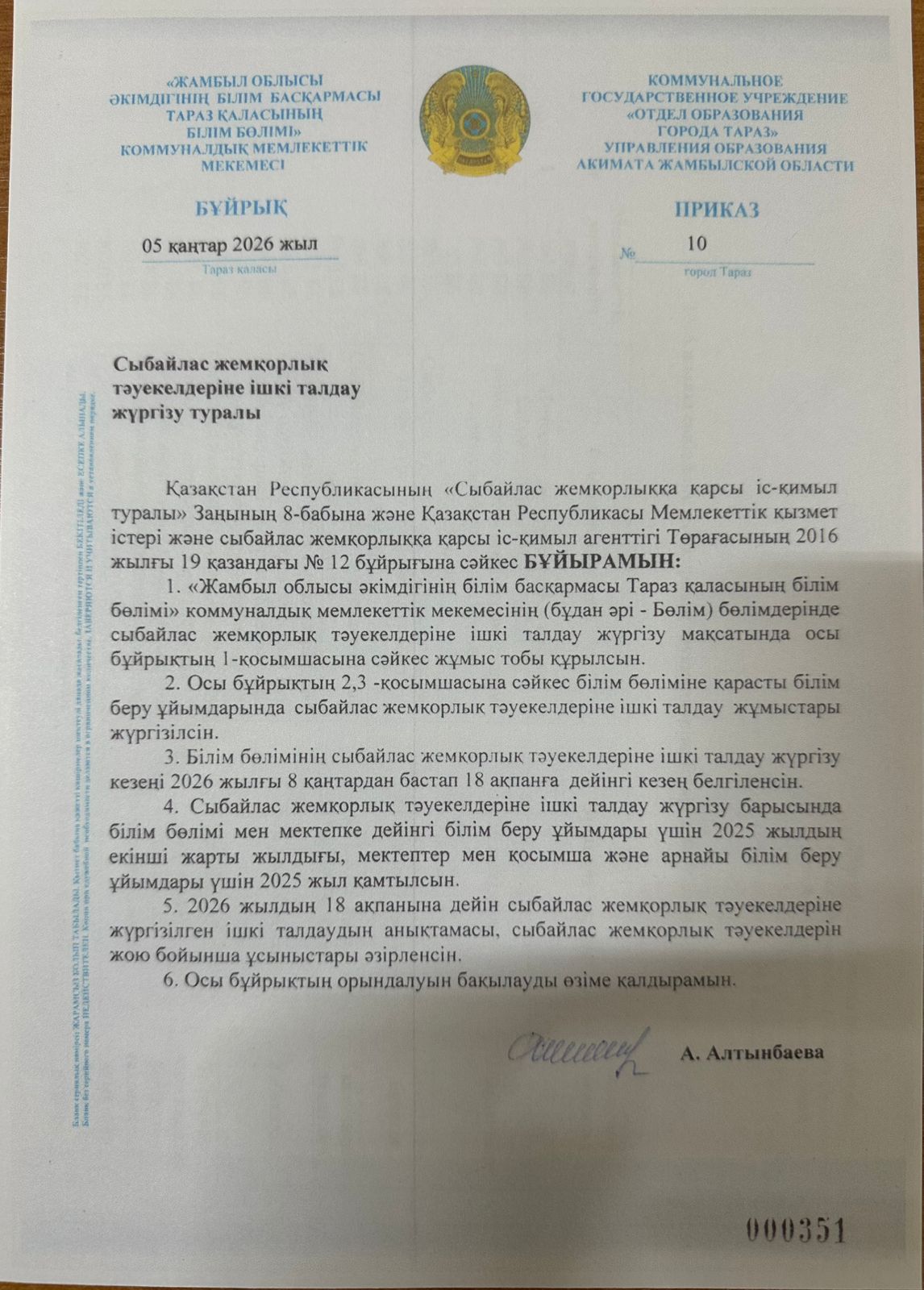 » » » Сыбайлас жемқорлық тәуекелдеріне ішкі талдау жүргізу туралы